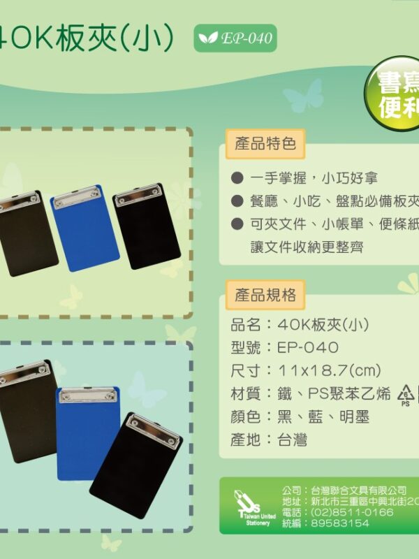 『台灣聯合』台灣聯合 40K板夾(小)#EP-040