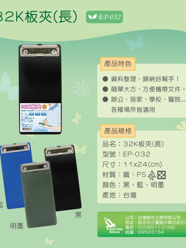『台灣聯合』台灣聯合 32K板夾(長) #EP-032