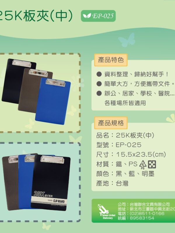 『台灣聯合』台灣聯合 25K板夾 #EP0-25